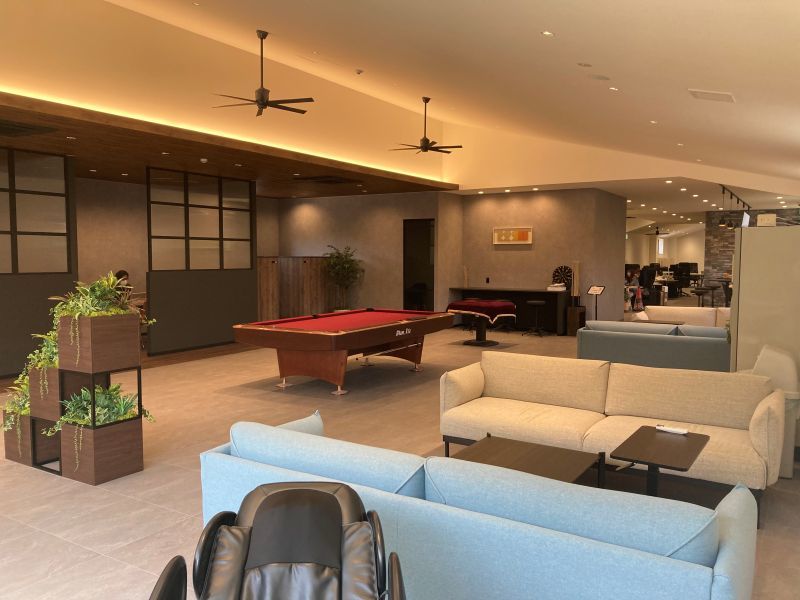 休憩スペースも広々♪ /マッサージチェアもあるよ\