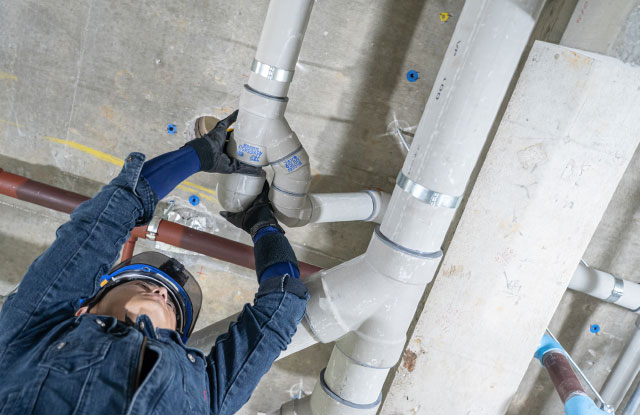 PLUMBING 管工事(給排水工事・空気調和設備工事) 給排水設備、空調換気設備、消防設備などの建物に関わる全ての設備業務において各種配管工事、設備機器工事の設計、施工、維持メンテナンスを行っております。 ![]() |