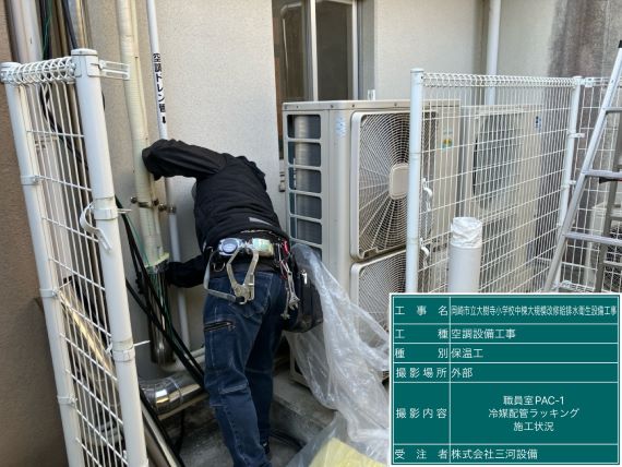 保温工 冷媒配管ラッキング施工