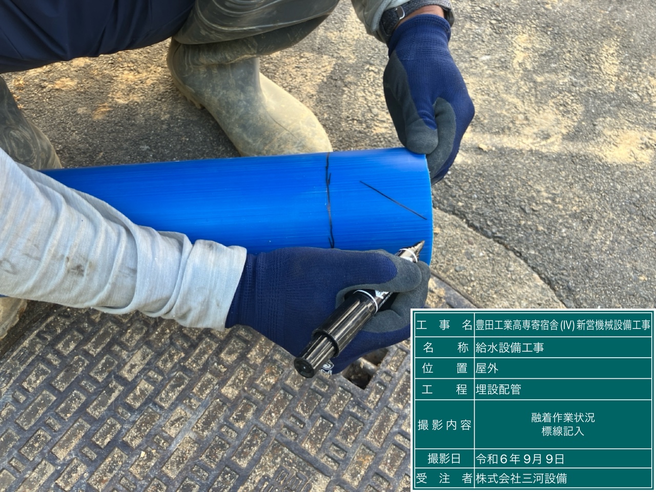 4.埋設配管 融着紗町状況(標線記入)